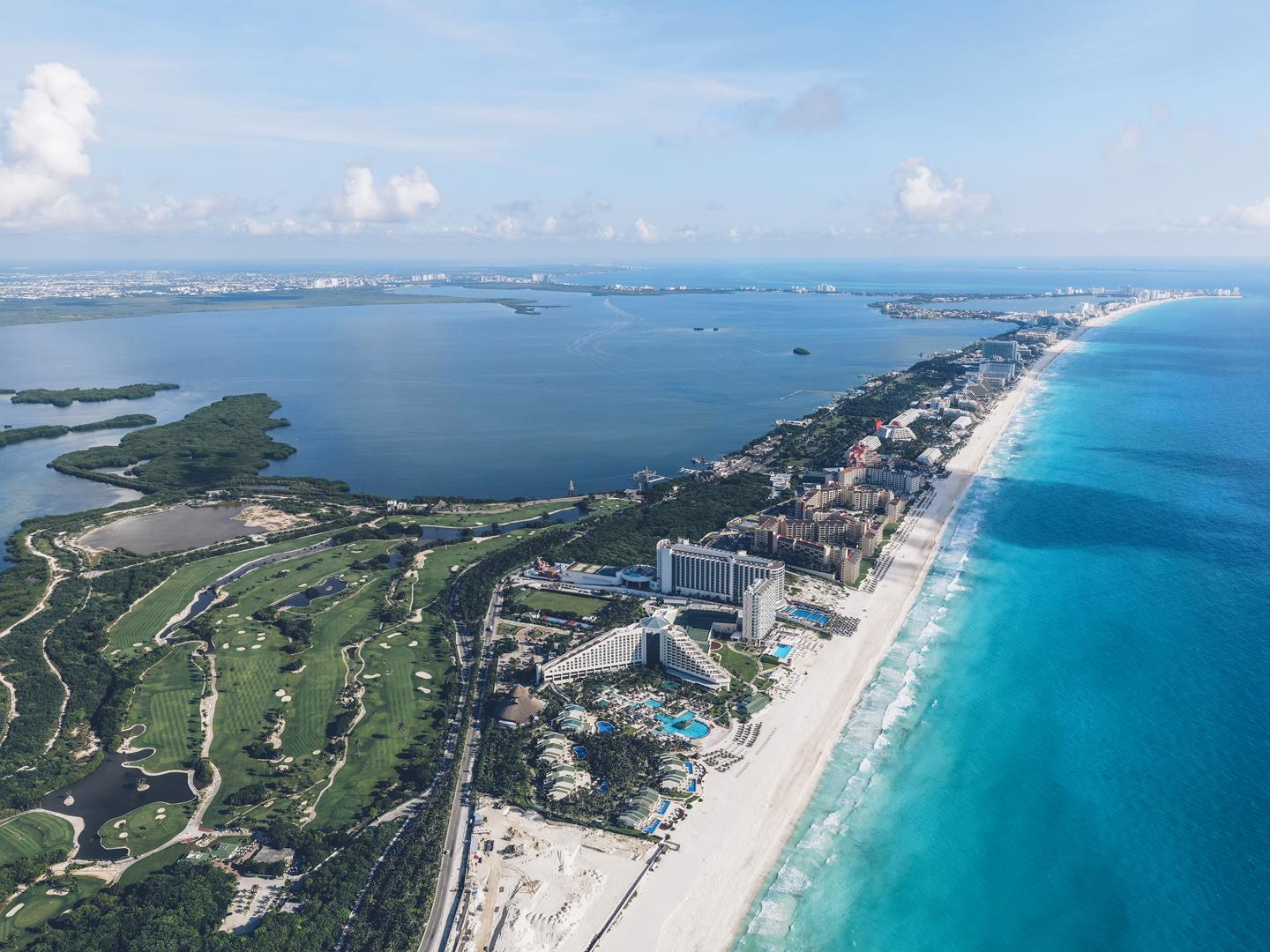 Iberostar Cancun Golf Club Situated on the premises of the Iberostar Selection Cancun resort less than 10 miles from Cancun International Airport. This on-site course presents a par-72 golf club, spanning 6,735 yards. It gracefully carves a way through 150 acres of subtropical landscape unveiling the inviting Caribbean Sea and mesmerising Nichupté Lagoon. Designed by the renowned golfer Isao Aoki this course provides an enjoyable experience for golfers of all abilities while enjoying the benefits offered by this unique location.