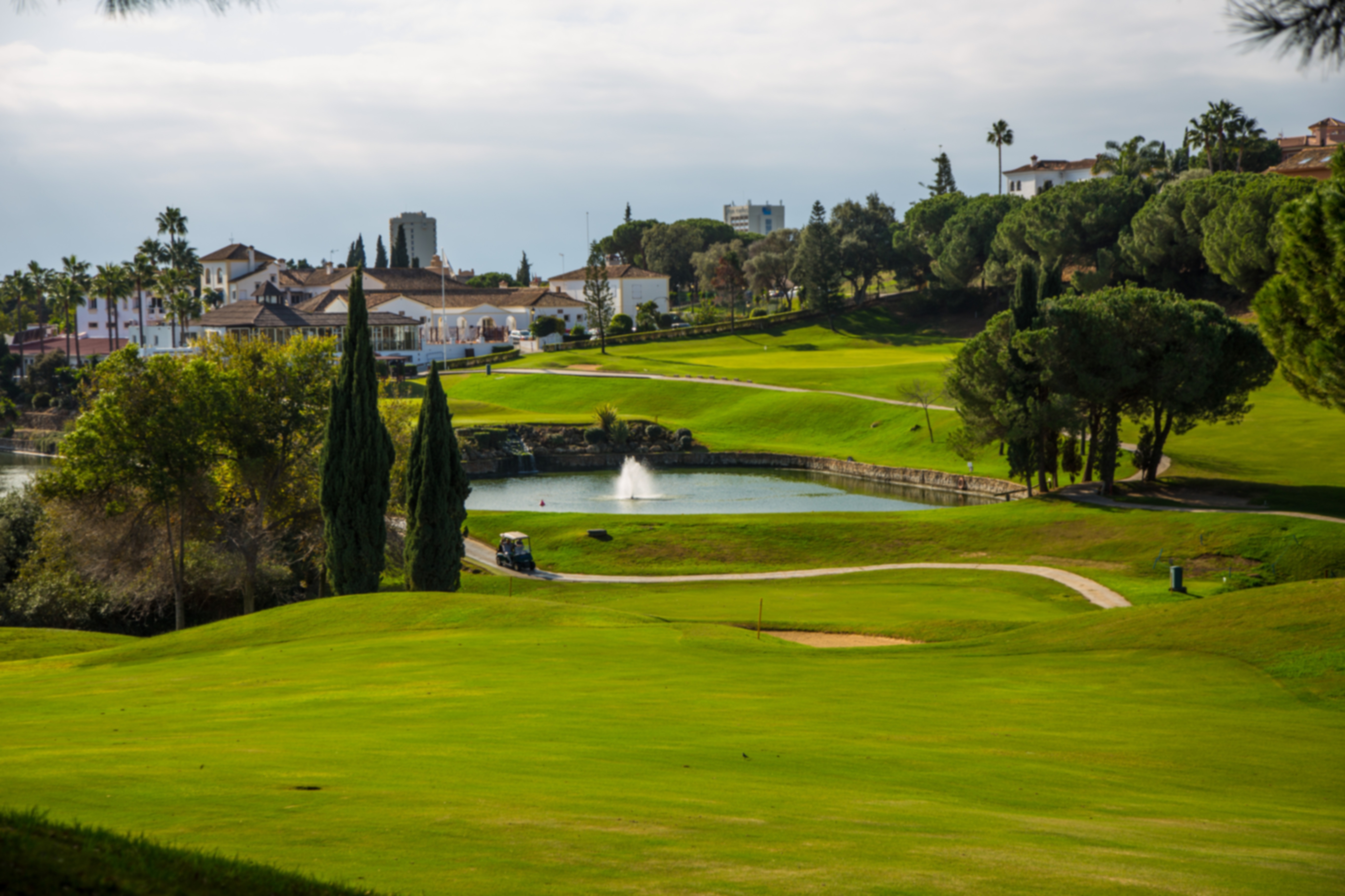 Designed by the renowned Antonio Garcia Garrido, this unique Tuscan-style golf course offers a great test of golf as well as stunning views of the Mediterranean, Africa, and Gibraltar. It winds its way around glittering lakes and each hole features its own type of tree, including pines, olives, cypresses, and chestnuts. Some of the fairways even feature Roman columns, statues and marble bridges. The signature hole has to be the charming 10th with its huge undulating green.