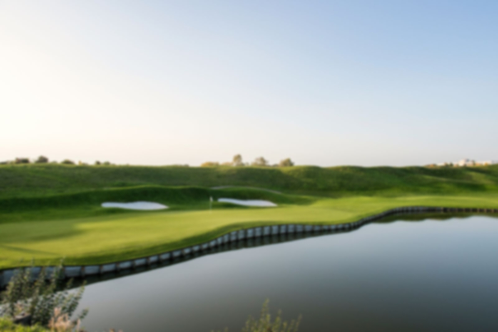 Hole 18 - A stunning par 4 framed by water, bunkers and the resort rising in the background.