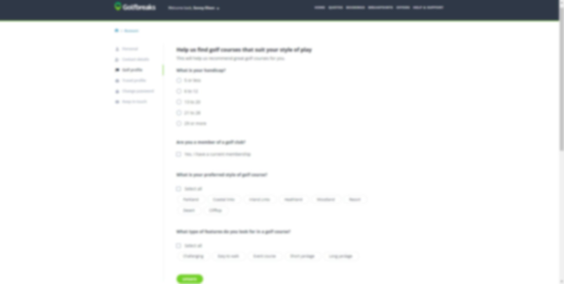 Here you can ensure your personal details are up-to-date and tell us more about your golf and travel preferences. This will personalise your experience and ensure that we show you the most relevant offers and information. The account page is also where you can choose how Golfbreaks keep in touch with you, with the option of subscribing to our weekly email, seasonal brochure, and SMS offers.