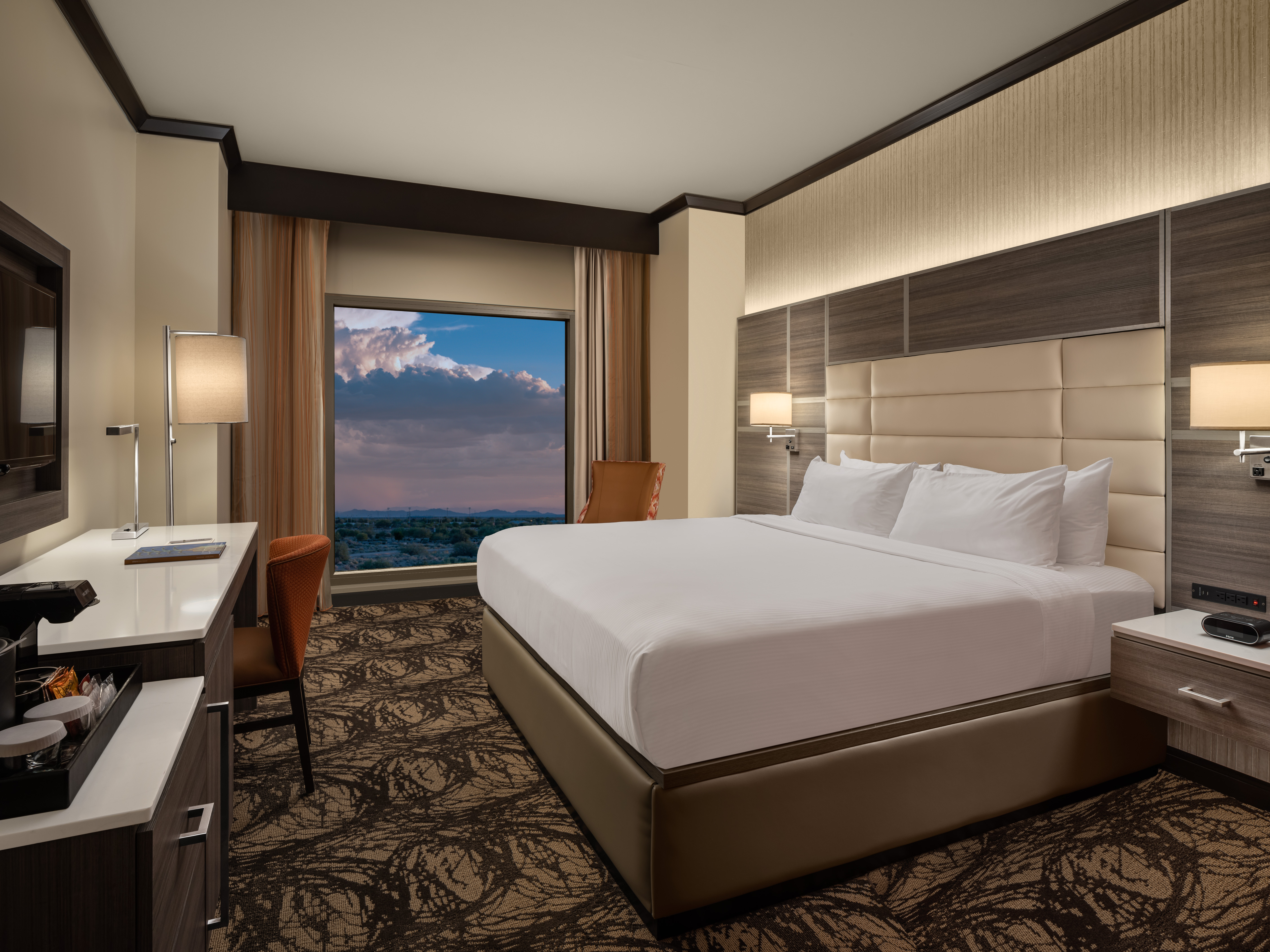 Your home for the week is Gila River Resort, a modern desert escape just 15 minutes from Phoenix Airport and 25 minutes from Old Town Scottsdale. Between rounds, relax in style with upscale rooms, great dining, and a vibrant atmosphere that perfectly complements your golf getaway.