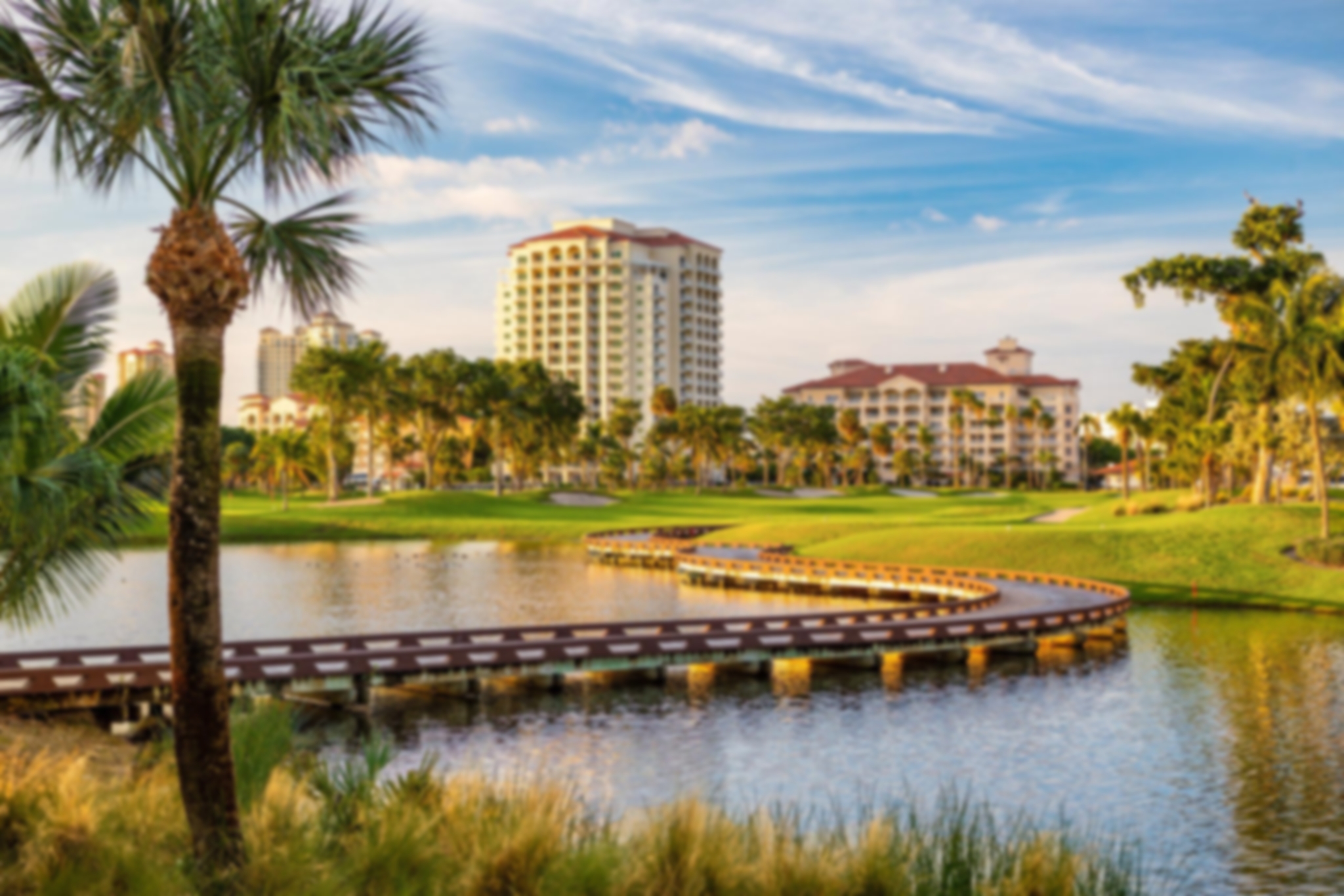 - Classic Florida setting with water in play on many holes