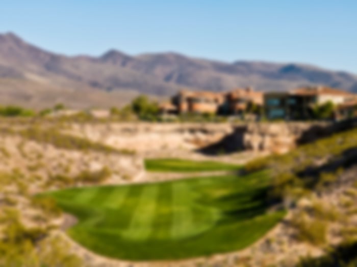 Highlight: The par-4 7th hole is one of the most memorable in Las Vegas, an elevated tee box delivers panoramic views of the Strip with a narrow landing area framed by desert brush and rock outcroppings.