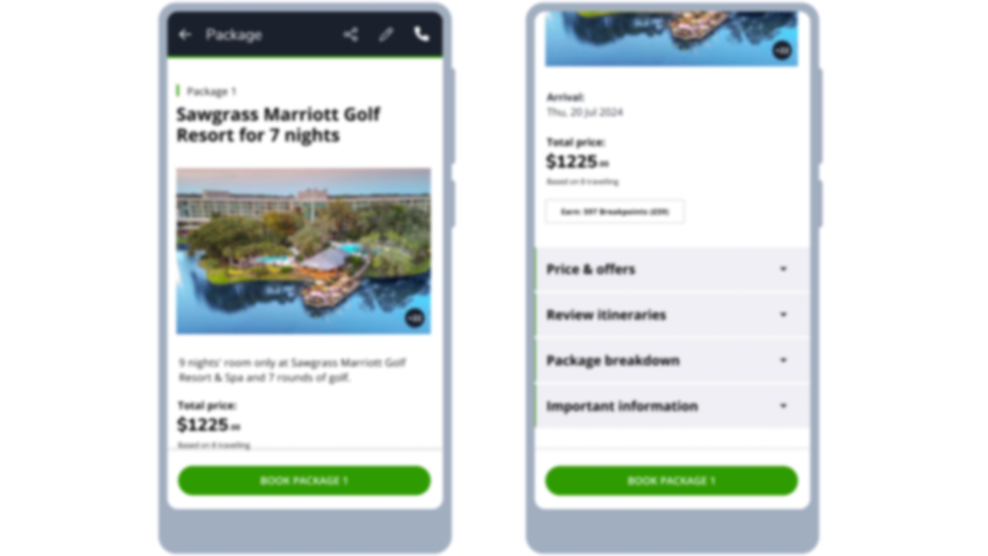 - Package Breakdown: Here you will find elements that are for your whole booking and not for a specific itinerary such as transfer offers and extras.