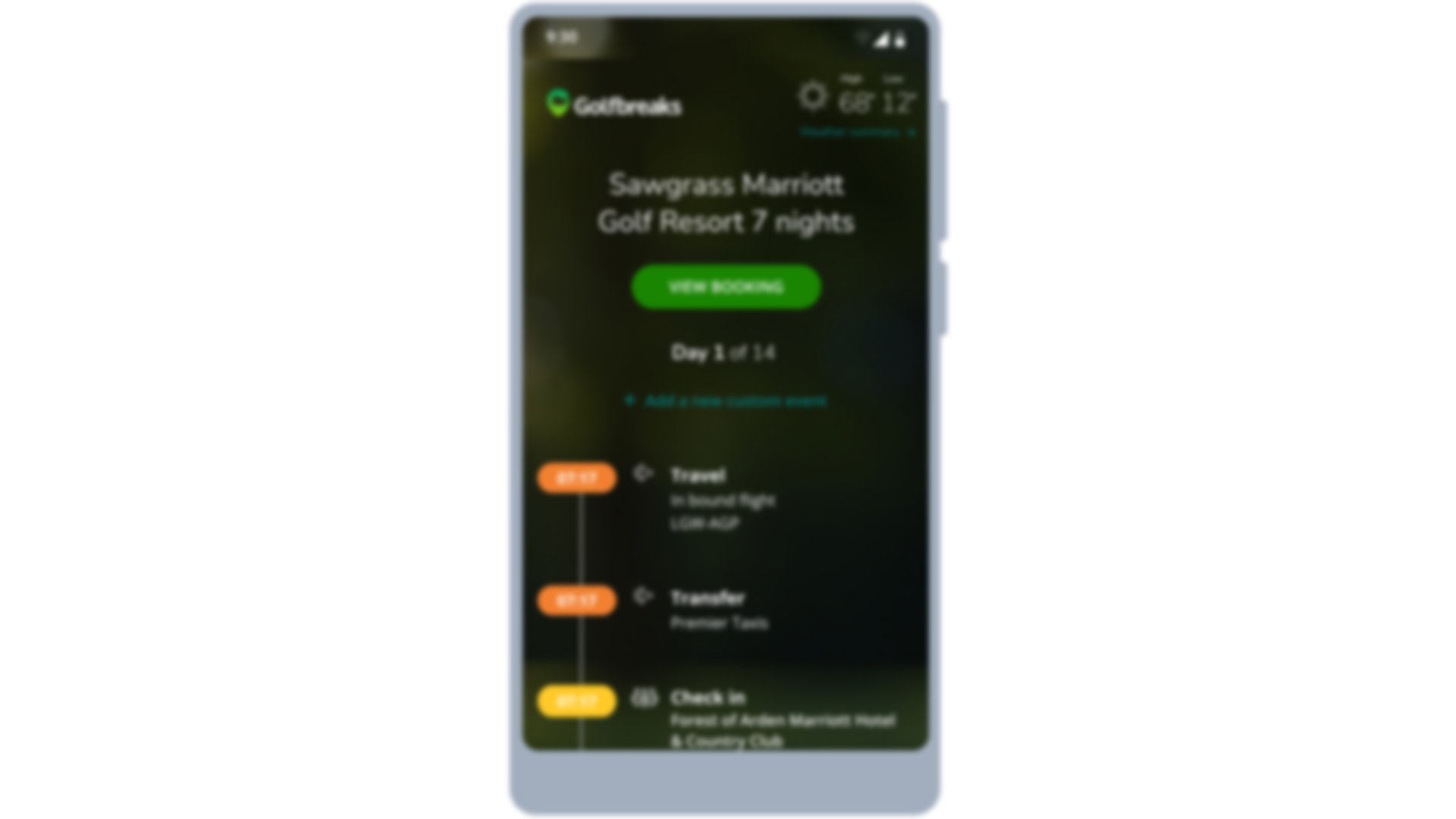 - Golf: Here you will be able to see all the information relating to the courses you are visiting such as tee times, course images, reviews and more.