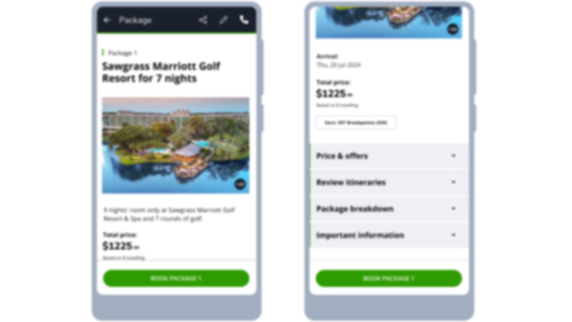 - Package Breakdown: Here you will find elements that are for your whole booking and not for a specific itinerary such as transfer offers and extras.
