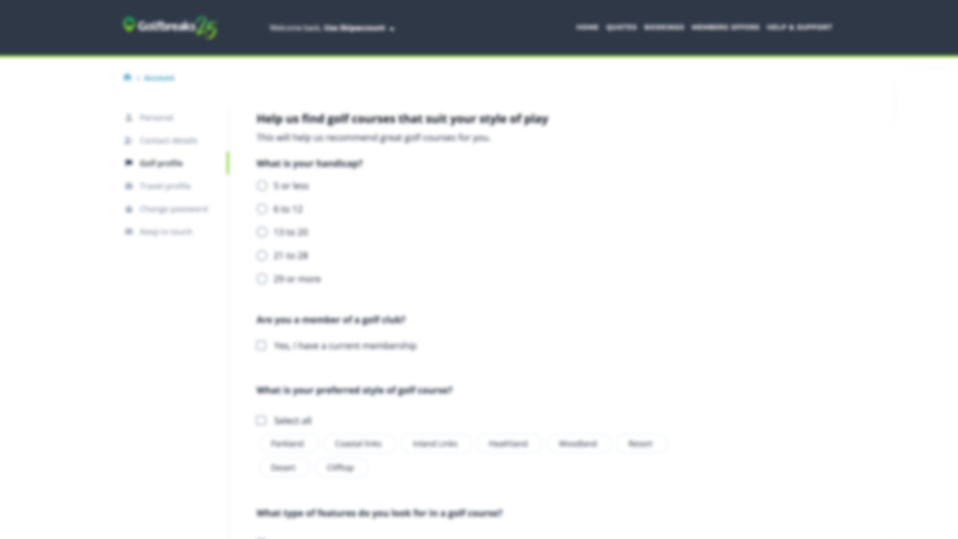 Here you can ensure your personal details are up-to-date and tell us more about your golf and travel preferences. This will personalize your experience and ensure we show you the most relevant offers and information. The account page is also where you can choose how Golfbreaks keeps in touch with you, with the option of subscribing to our weekly email, seasonal brochure, and SMS offers.